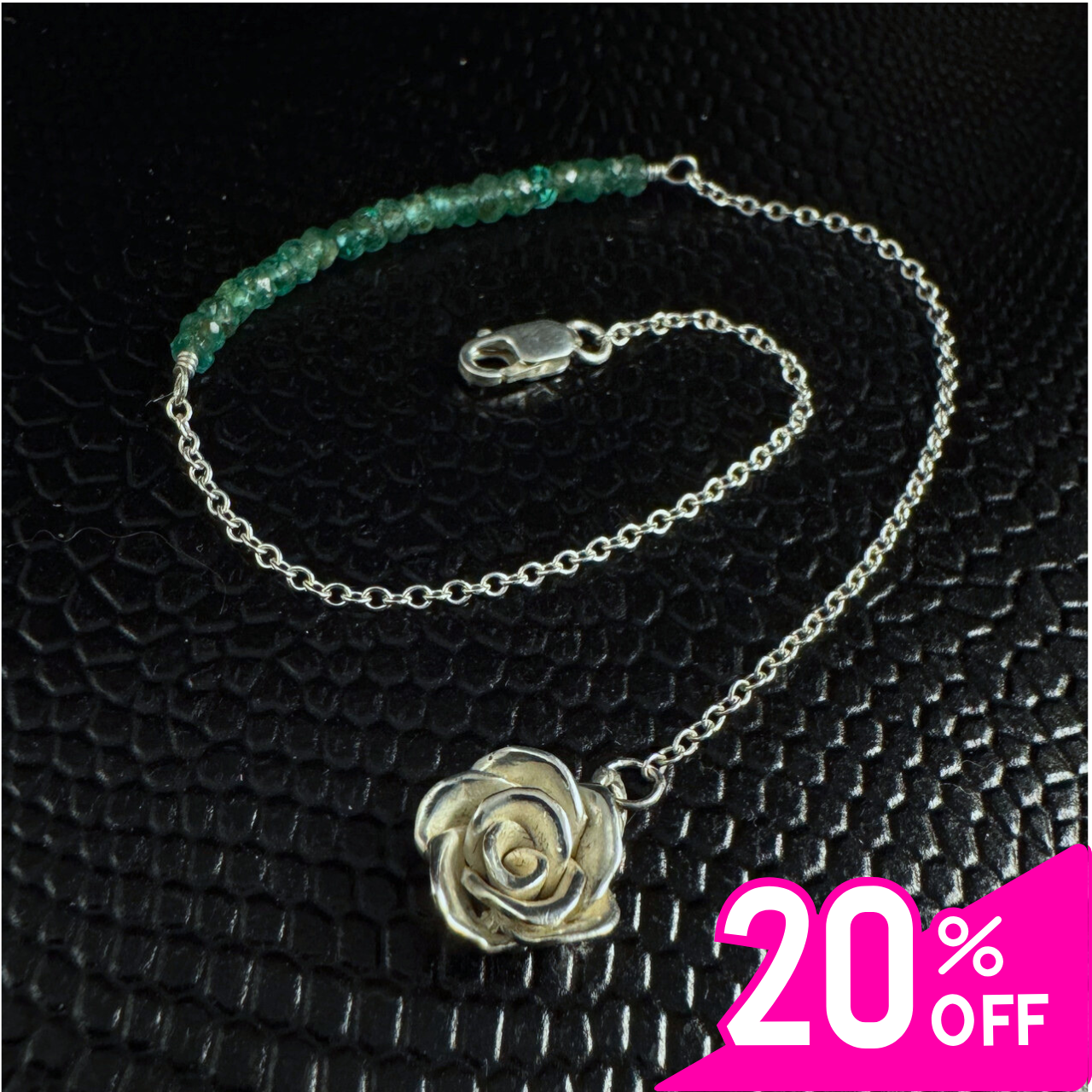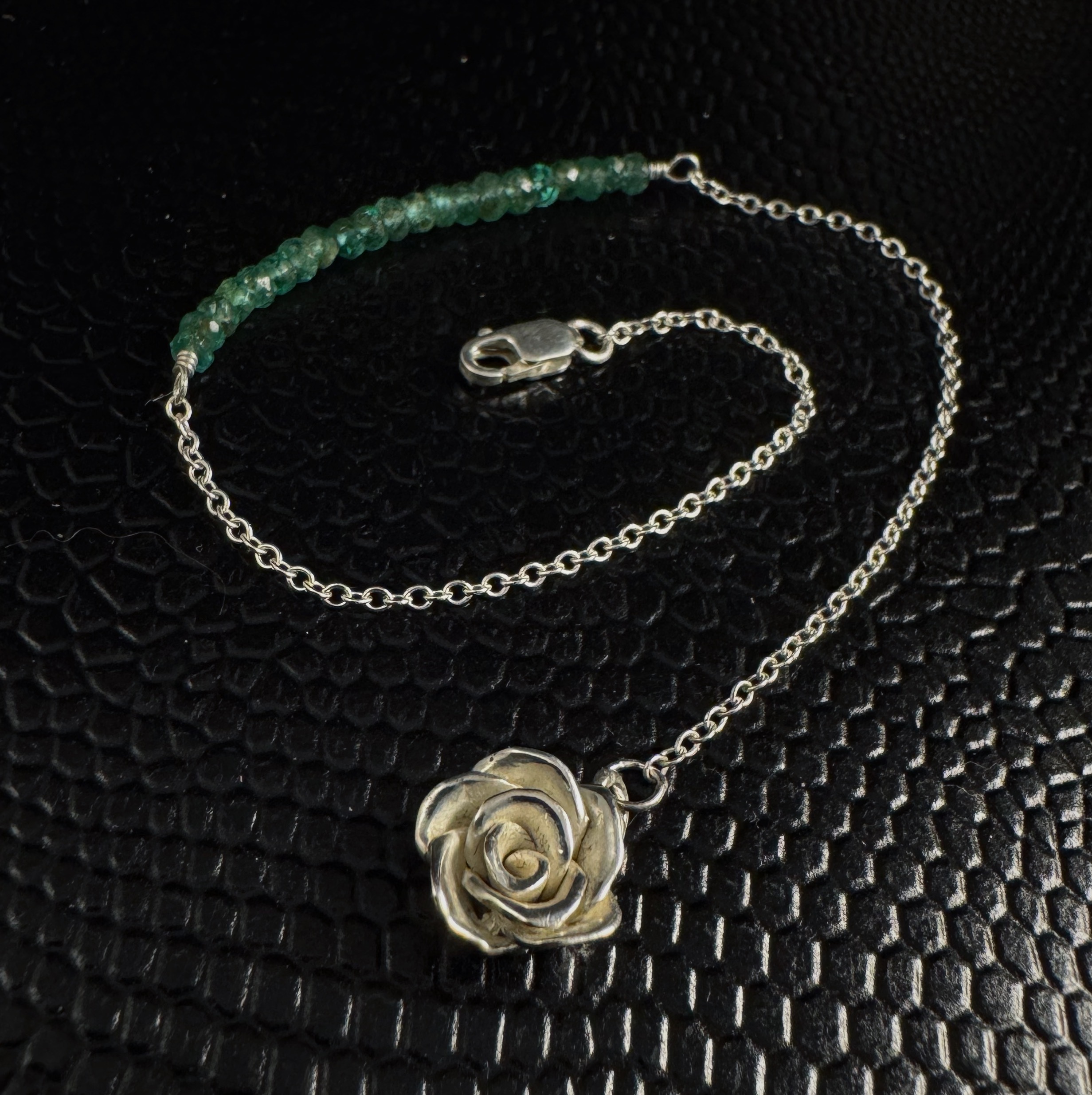 - In order to counterbalance the stones, I've soldered my handcrafted Mini Rose cast sterling silver pendant at the clasp end, so that the stones will always be highlighted at the top of your wrist