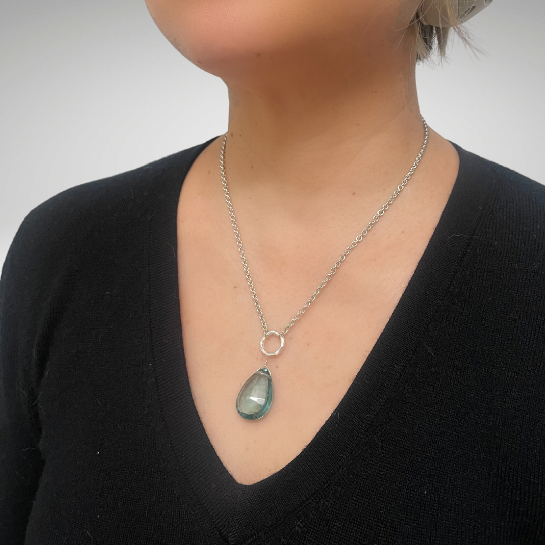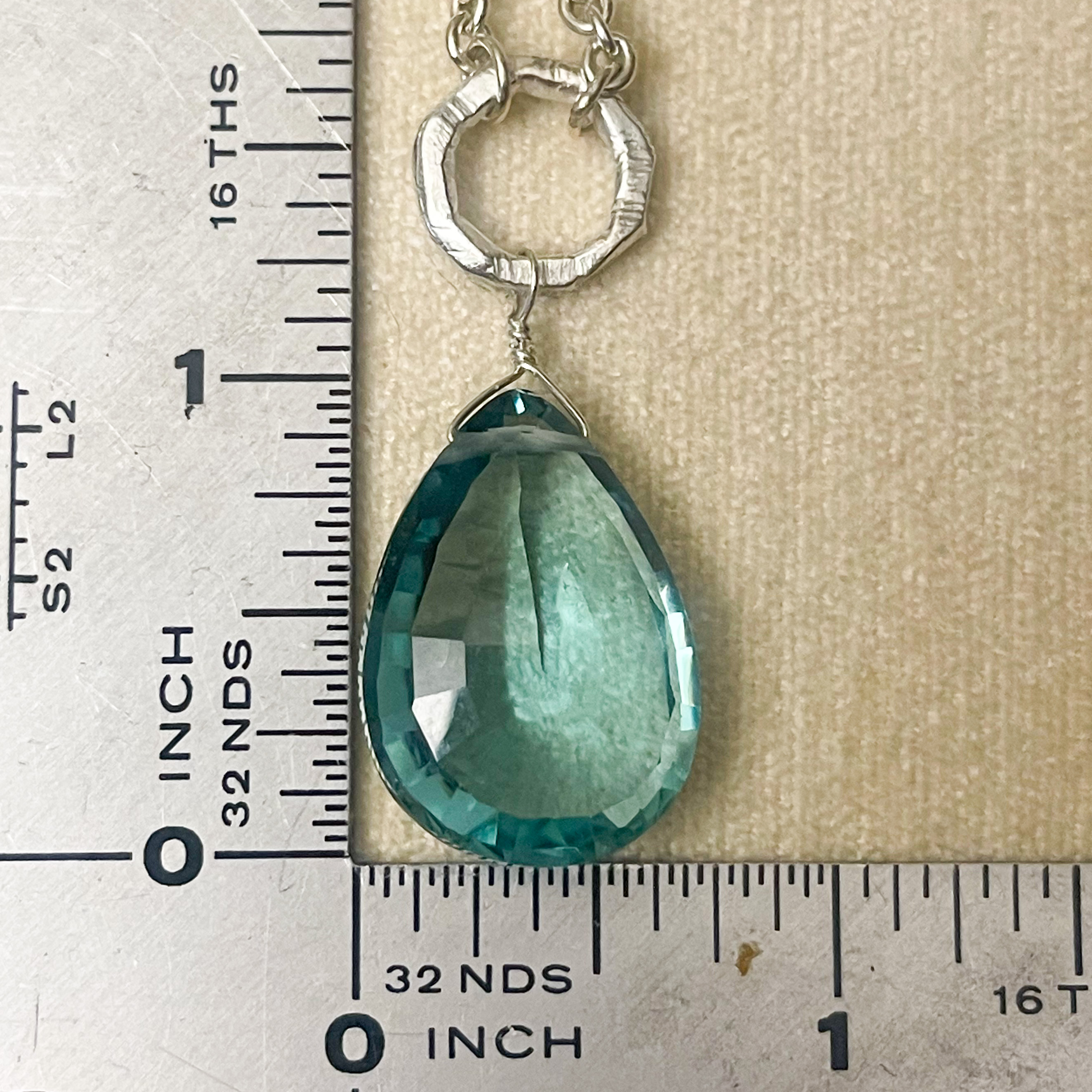 - Adjustable chain drop has a faceted, flat pear-shaped genuine green amethyst accent, wirewrapped in sterling at the chain end as an accent