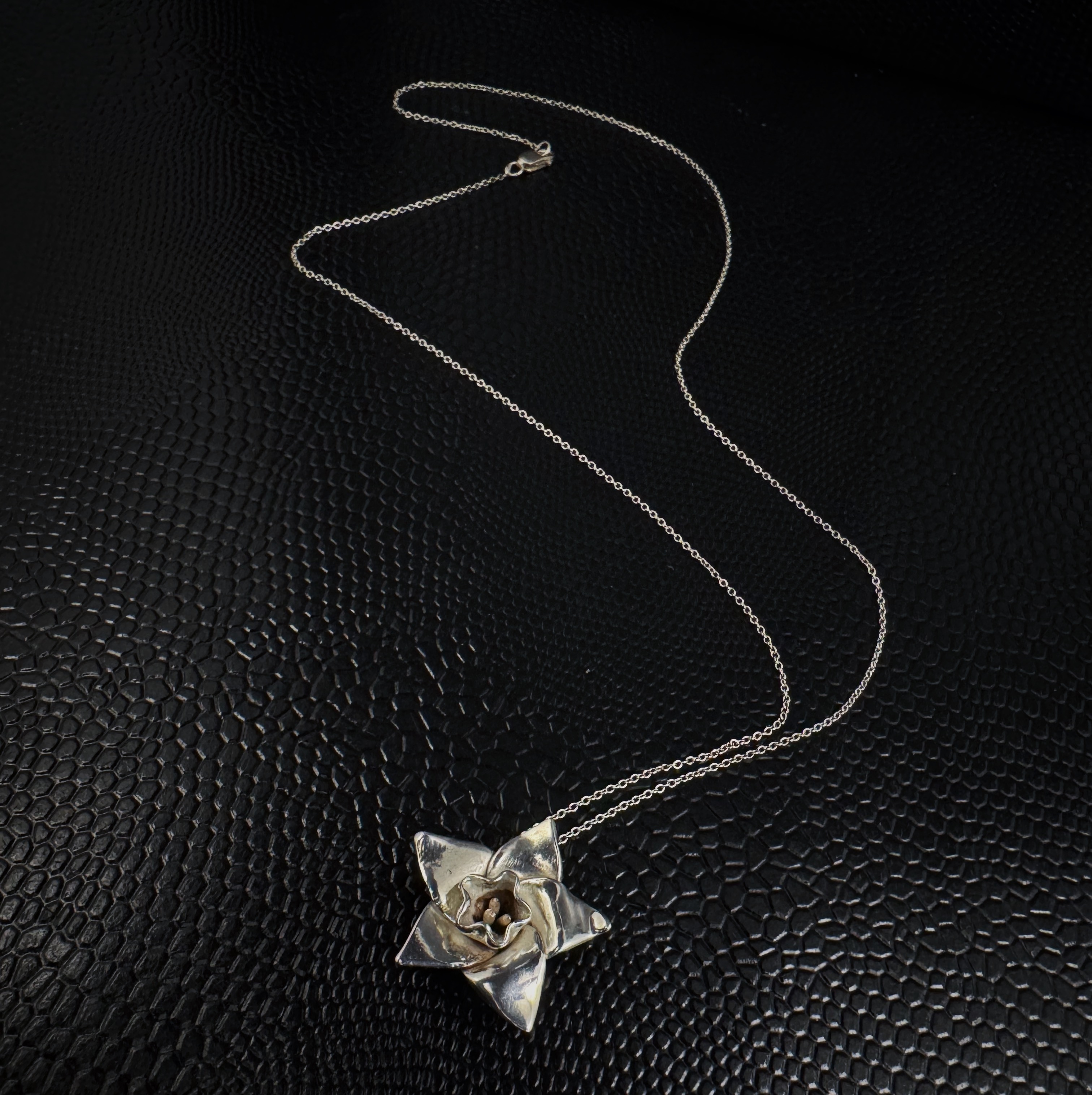 - The daffodil pendant was originally handmade out of wax by Janet, and cast in solid sterling silver in New York City