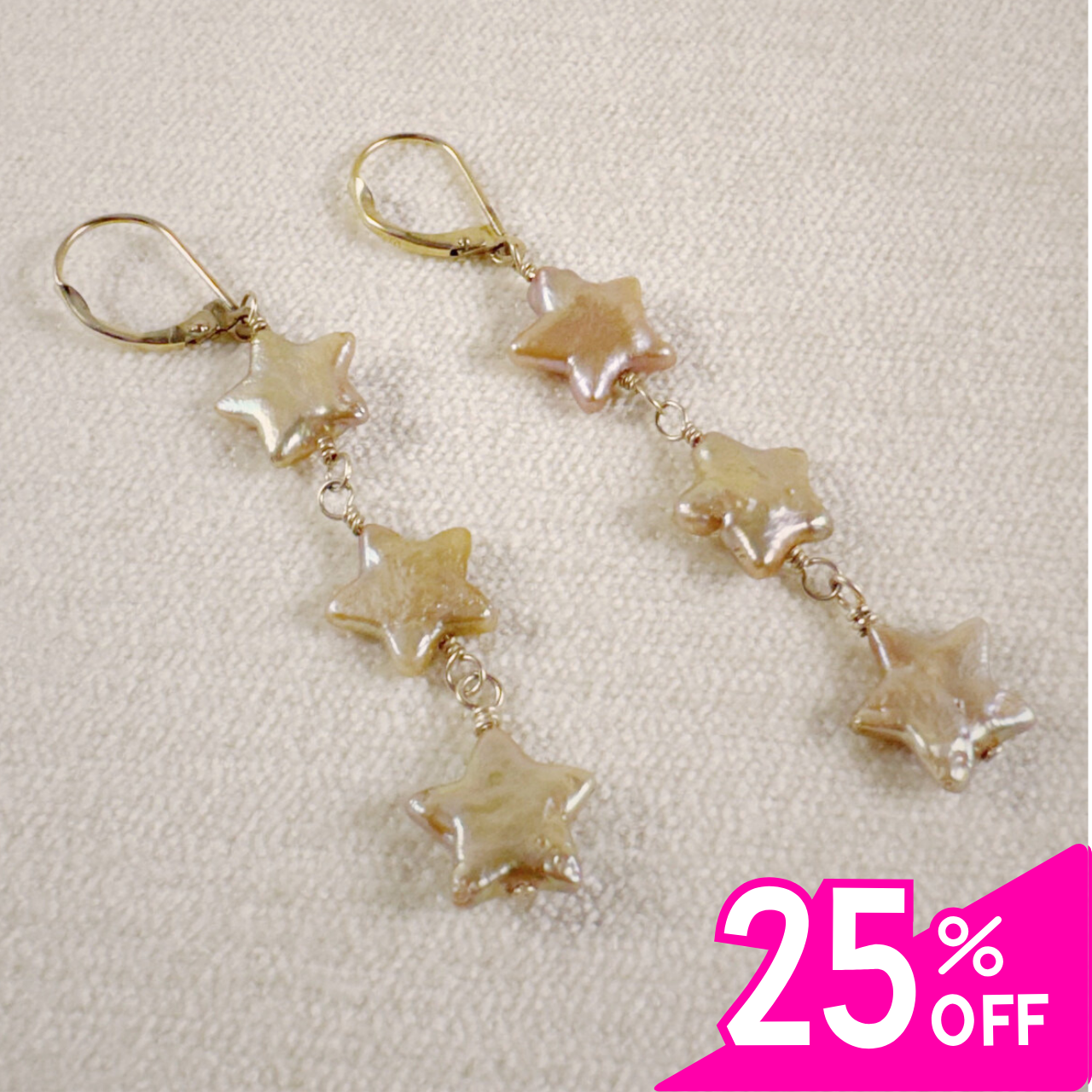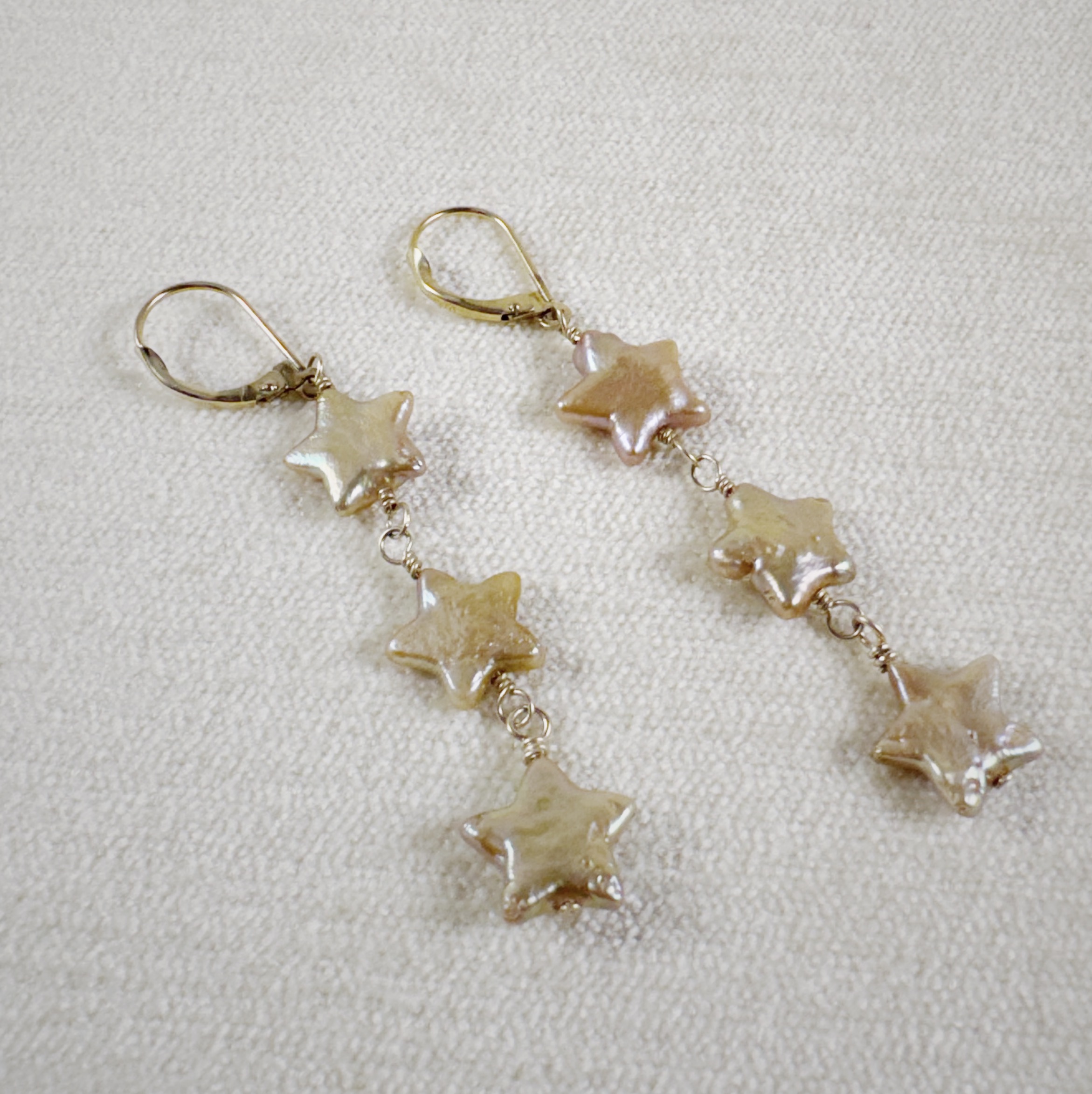 - Genuine Freshwater Baroque Star Pearls, natural peach color